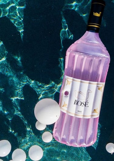 Incluye 7 flotadores de corazón, 1 Rosé y un soporte de bebidas flotante.